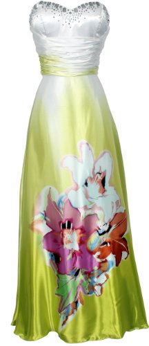 Strapless Floral Satin Evening Gown Prom Dress Gem Accents, Size: 2X, Color: Lime Review and Overviews